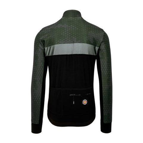 Protective thermal Jacket in trending camo navy’s and deep blacks; featuring 360° integrated refection panels and pockets.
